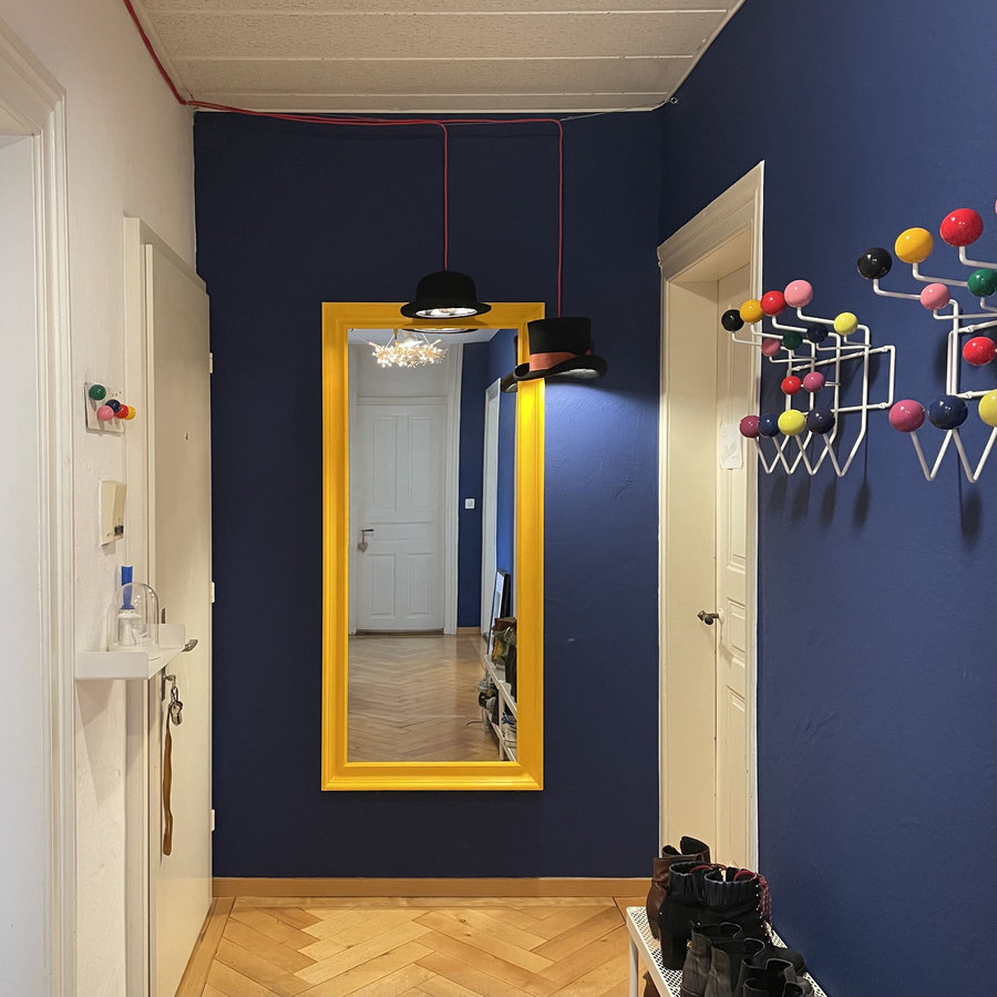 Korridor, Blau, Altbau, Mid century, Eames, Hang it all, Diy, Gelb