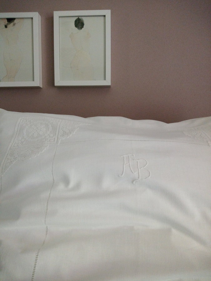 Die Kissenbezüge aus der selbstgefertigten Aussteuer meiner Oma mit Monogramm und Häkeleinsätzen stammen aus den frühen 30er Jahren des 20. Jahrhunderts und sind tadellos in Ordnung!🤗🤗🤗