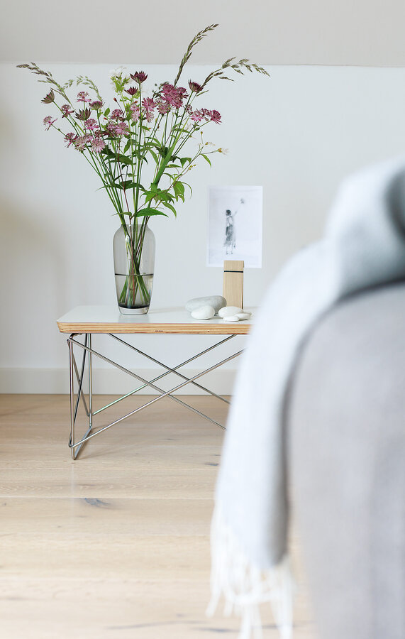 Gartenblümchen, Wohnzimmer, eichenboden, Dachschräge, Kunstpostkarte, Sommer