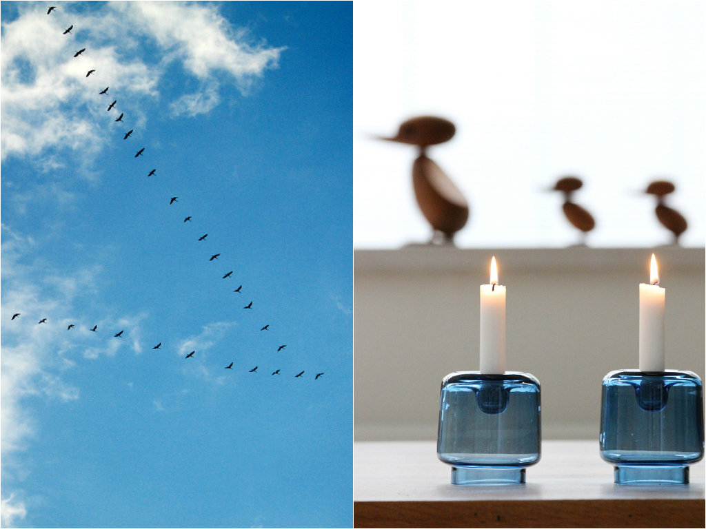 Kraniche, Blau, Kerzenständer, duck und duckling
