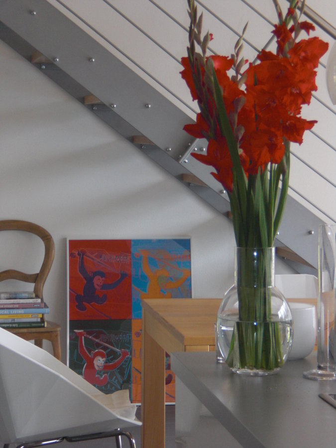 Passend zum ziemlich neuen Bild unter der Treppe habe ich jetzt Gladiolen geschenkt bekommen. Gladiolen mochte ich lange Zeit überhaupt nicht, aber momentan mag ich sie ganz gerne.