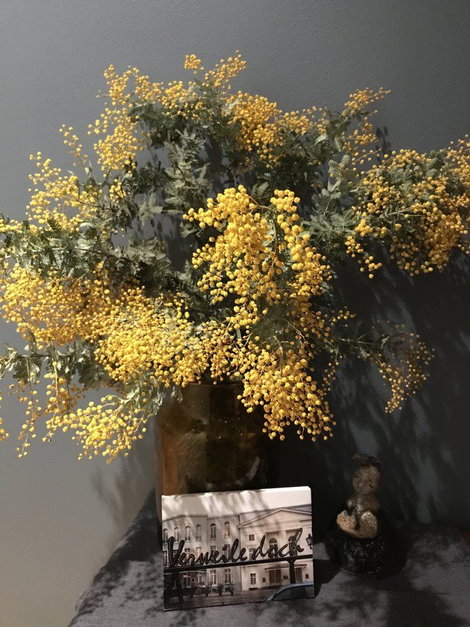 "Gehtnichmüssenaufarbeit," brummte der alte Subaru, und machte sich auf den Weg, an der Küste entlang, an den Kuhweiden vorbei, über die Bergstraße zurück in die Hauptstadt. Doch unterwegs hielt er an einer Tankstelle. Und bevor es sich irgendjemand anders überlegen konnte, holte die Frau die Gartenschere aus dem Handschuhfach und schnitt ein paar Zweige ab, vom goldenen Wattlestrauch. Und jetzt scheint tief in der Nacht immer noch die Sonne, auf dem Bücherregal am Stadtrand. Und hoffentlich bei euch!!!