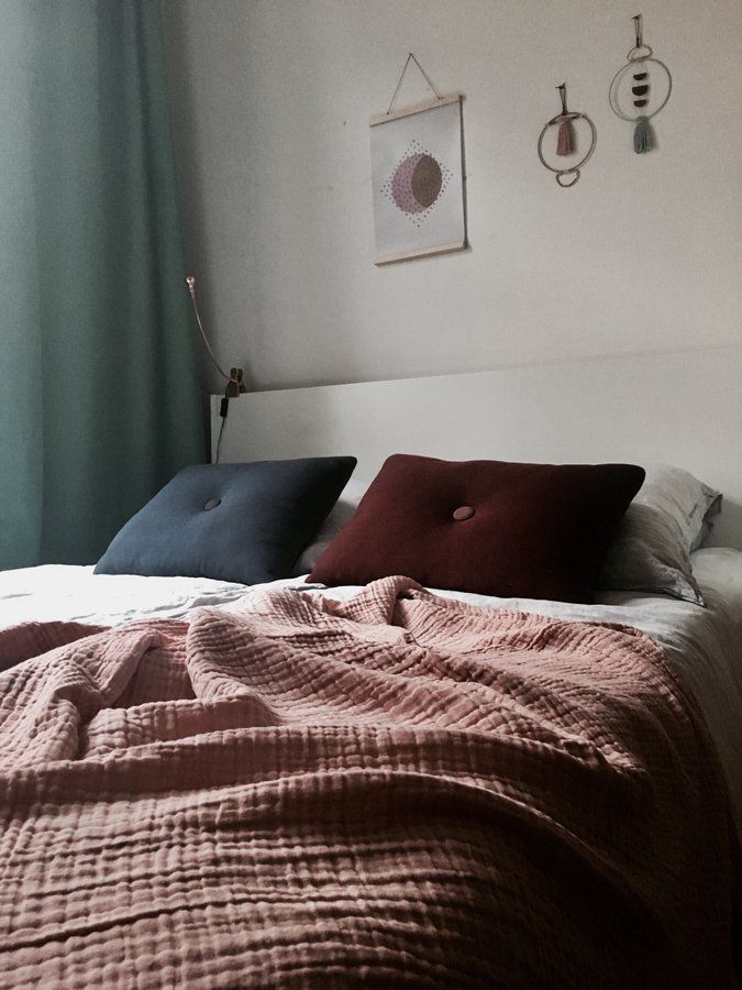 Schlafzimmer, Grau, Türkis, Blau, Bordeaux, Rosa, Decke, Kissen, Wallhanging, Mondprint