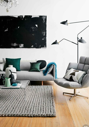 Grün ist derzeit die dominierende Farbe in meinem Wohnzimmer. Pflanzen, Kissen (sieht man hier nicht) und Blumentöpfe haben alle zufällig diesen Grünstich. Jetzt würde ich noch einen anderen Teppich bevorzugen, aber welche Farbe soll der haben? Rot?