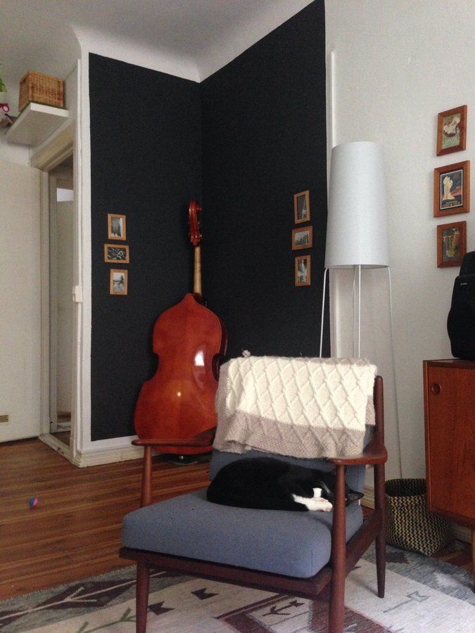 Farbwechsel, Wohnzimmer, Wandfarbe, Schwarz, Sessel, Stehleuchte