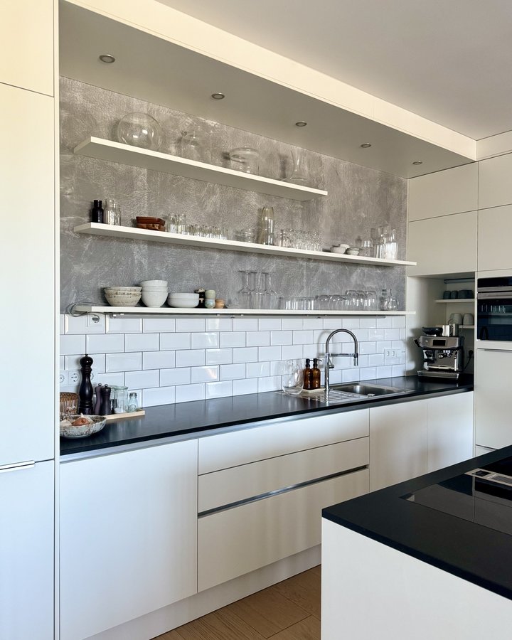 Küche, Industrial, beton, Sichtbeton, Granit, Metrofliesen, Monochrom, Minimalistisch, Kaffeemaschine, Siebträger