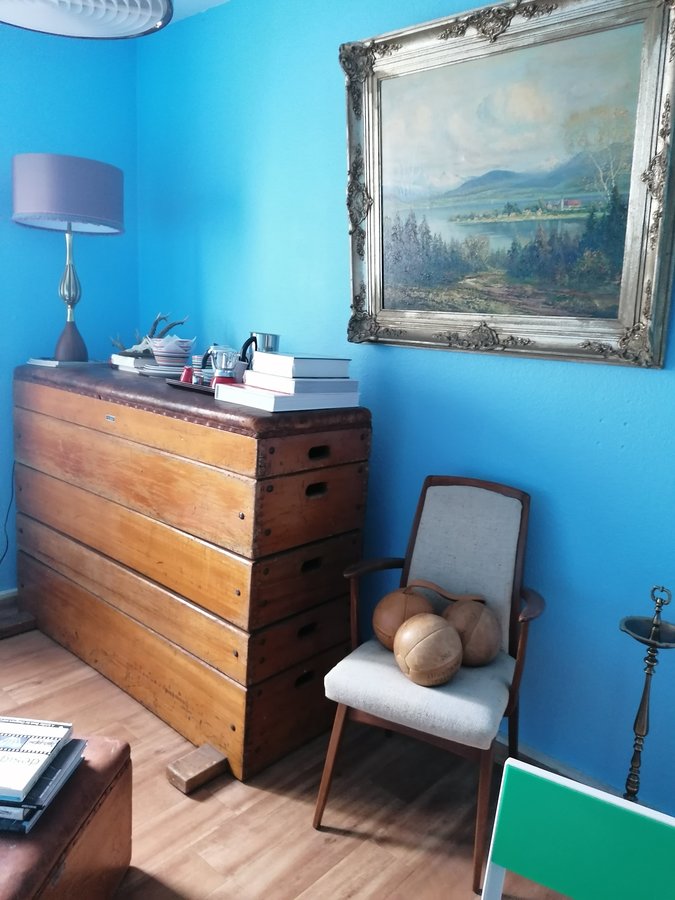 Tischlampe, Sprungkasten, Stuhl