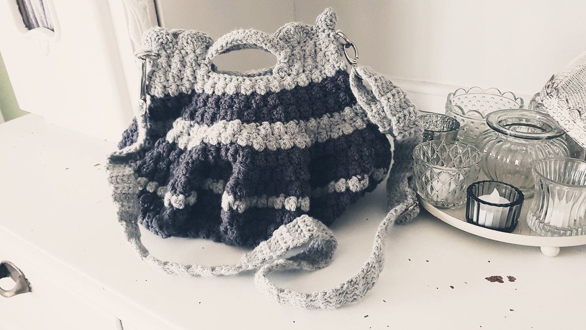 Hab dieses Handtasche ohne Anleitung gemacht. Einfach mal drauf los gehäkelt und konnte nicht mehr stoppen. Die Halterungen hatte ich von einer anderen Handtasche wiederverwertet, da sie kaputt war. Bin mit meiner neuen Handtasche sehr zufrieden, aber weniger mit dem Tennisarm, den ich mir deshalb eingefangen habe ;-).