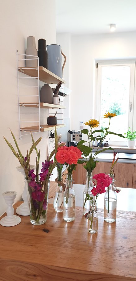 Hab meinen kleinen Sohn in den Garten geschickt, um Blümchen zu schneiden für die Tischdeko der Grillfeier. Dies war seine Auswahl. 🌸🌼🌹🌿🌻