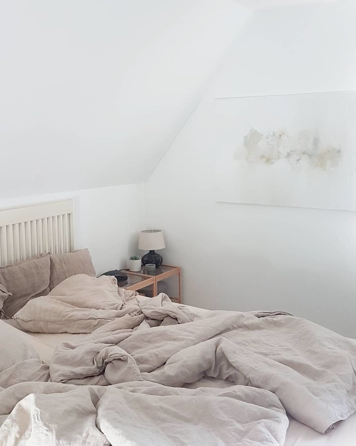 Schlafzimmer, Bettwäsche, Beige, Wandgestaltung, Bett, Tischleuchte, Nachttisch