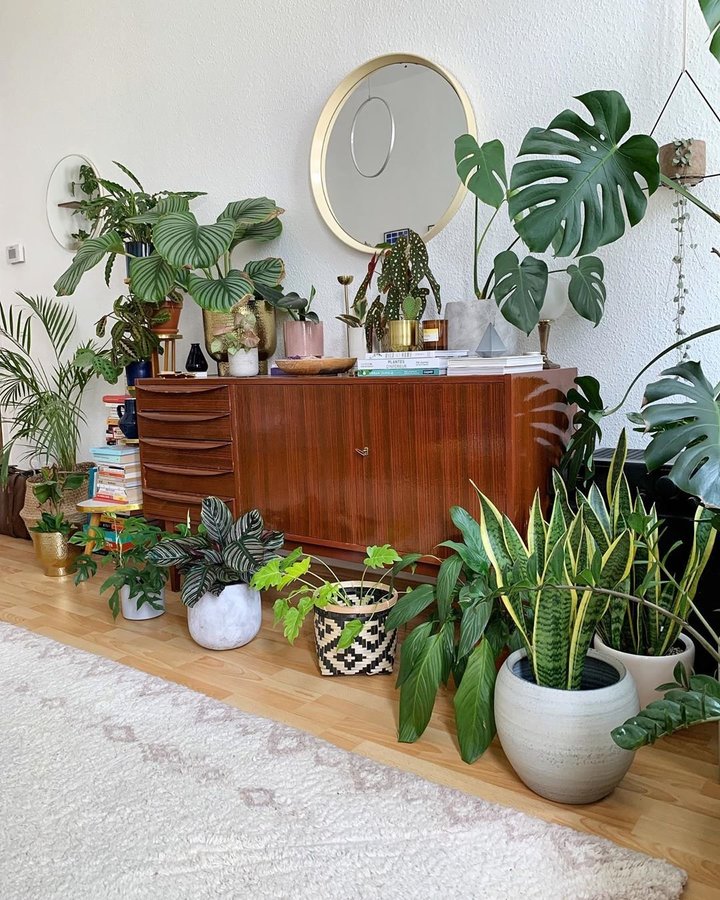Sideboard, Vintage, Runder Spiegel, Zimmerpflanzen