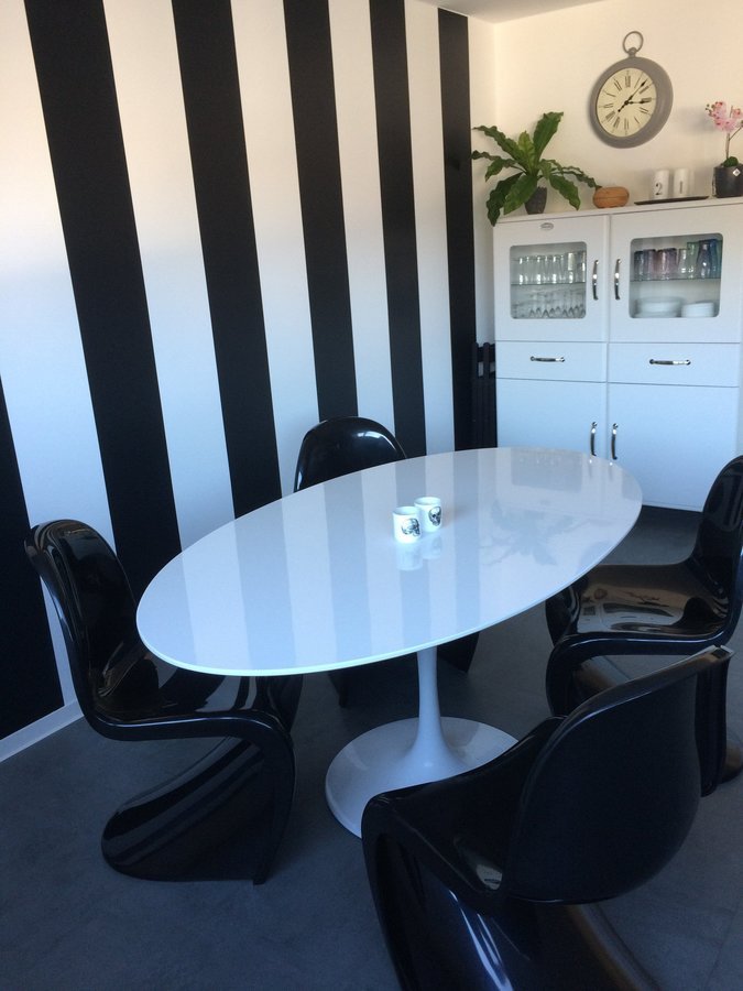 Tulip, Phanton, schwarz weiß klavierwand, beton, Essecke