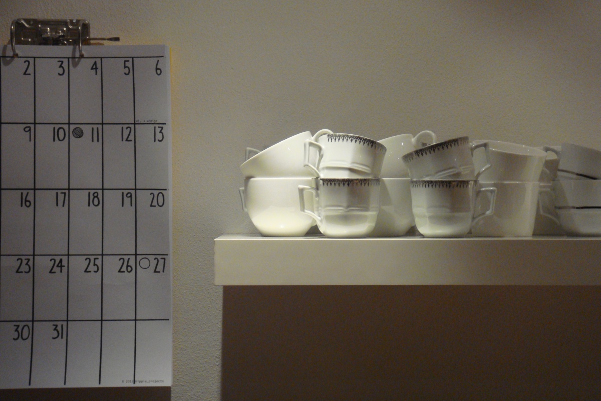 und gesammelten, geliehenen Tassen.