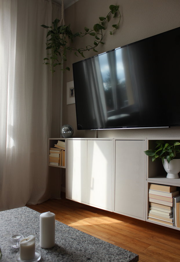 Wohnzimmer, Wohnzimmer aktuell, Wohnzimmerdeko, Wohnzimmertisch, Sideboard, Beige, Pflanze, Pflanzen, Couchtisch, Granit, Ikea, Sonne, Sonnenschein, Sonnenuntergang