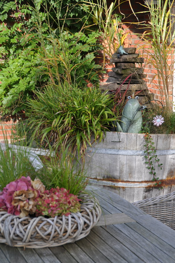 Ein altes Weinfass wurde umfunktioniert und es entstand dieser Brunnen. Der Frosch ziert dieses schöne Stück :smile☺️