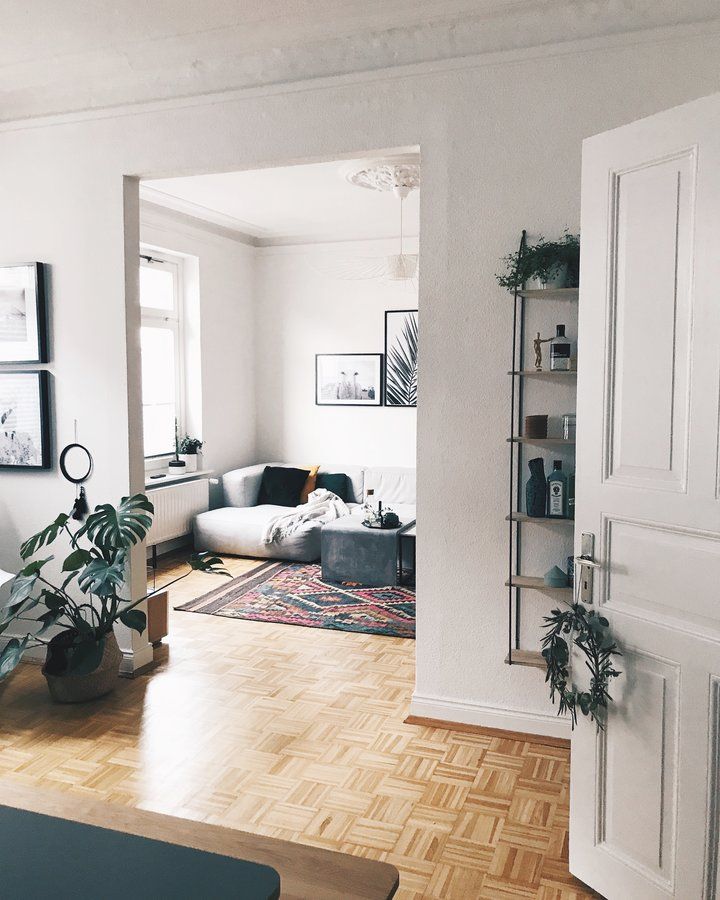 Wohnzimmer, Sofa, Blumenkranz, Diy, Esszimmer, Altbau, Pflanzen, Monstera, Interieur, Interior Design, Deko im Wohnzimmer, Einrichtungsideen, Skandinavisches Design, Scandinavian