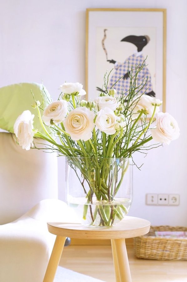Heute bei mir in der Vase: Ranunkeln und Heidelbeerkraut