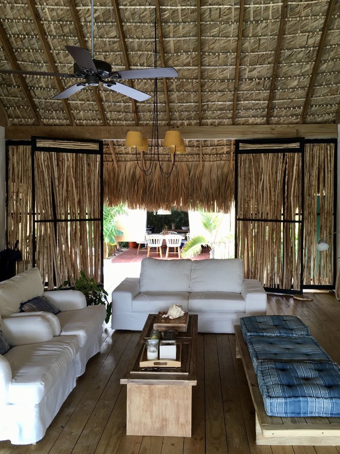 Heute gibt es eine meiner Lieblinsperspektiven: Der Blick geht vom Teetisch auf der Veranda durch das Wohnzimmer und somit einmal durch das ganze Haus über den Vorplatz zur Außenküche. Dieses Lebensgefühl mit den „offenen“ Wänden und diesem nahtlosen Übergang zwischen Haus und Garten ist ganz 😁 großartig.