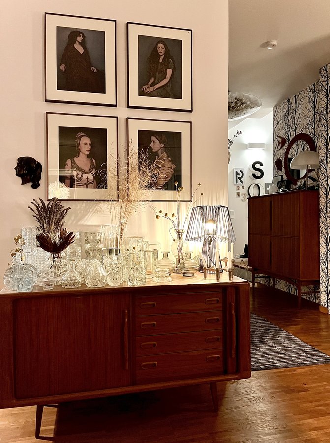 Vintage, Teaksideboard, Bilderwand, Vasensammlung