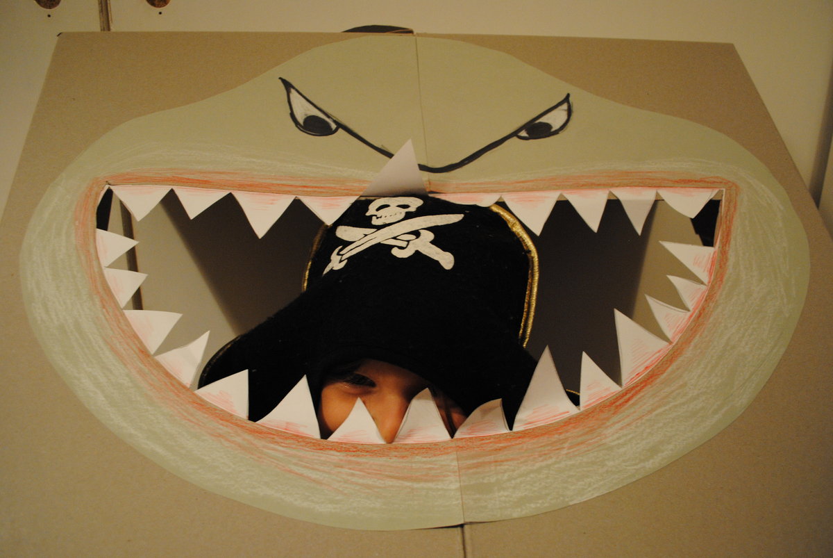 ein großes, gräßliches, blutrünstiges haimaul basteln (war schon vorab super-lustig und verkürzte meinem sohn die wartezeit auf seinen geburtstag).