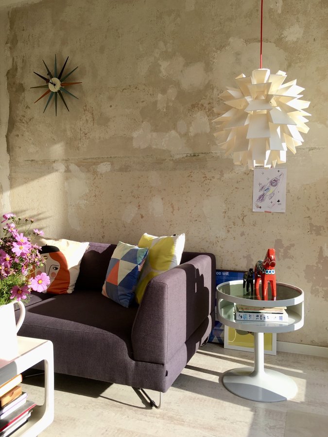 Hängeleuchte, Sofaecke, Philuko, Beistelltisch, Wanduhr, Wanddeko