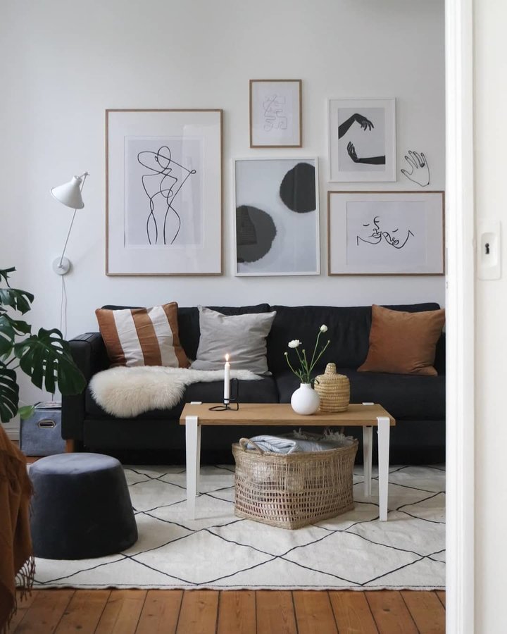 Wohnzimmer, Altbau, Sofa, Teppich, Wohnzimmertisch, Bilderwand, Wandgestaltung