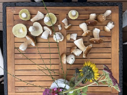 Hochneblig-trüb-wundervoll - ich sitze im Sessel und genieße meinen Lieblingsblick. Von den Kranichwiesen zieht leichter Bodennebel auf, ich liebs so sehr...