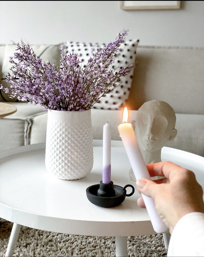 Couchtisch, Wohnaccessoires, Vase, Wohn Esszimmer, Wohnbereich, Wohnen, Frühlingsblumen, Frühlingsdeko, Kerzen, Kerzenständer