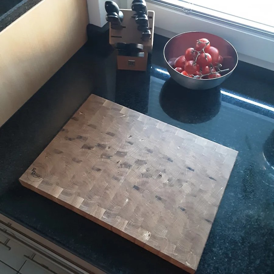 Ein massives Stirnholzbrett aus Eiche!