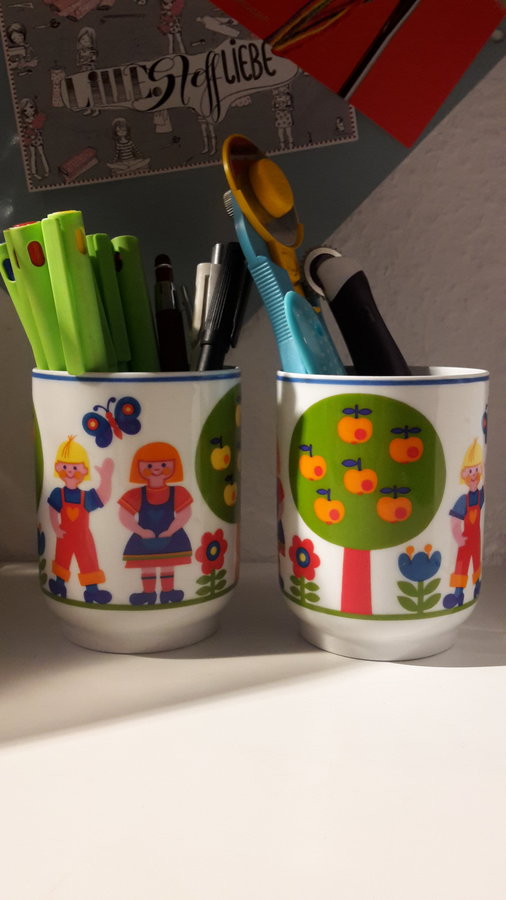 Ich konnte einfach nicht dran vorbei gehen, sie sind mir direkt ins Auge gesprungen. Und eigentlich passen sie auch nicht soooo gut. Aber ehrlich: Zwei ORIGINAL Graziela Becher aus den 70ern (gibt's ja nun auch neu aufgelegt) für insgesamt 1 (einen!) €... Hättet ihr die einfach stehen lassen können?!