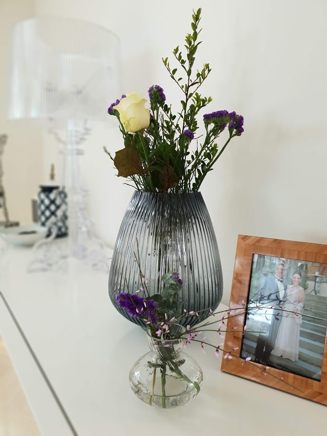 Ich liebe Blumen und sorge dafür, dass ich jeder Woche frische aus dem Markt hole. Ein schöner Blumenstrauß, erhöht das Chi - den Energiefluss in jeder Raum!