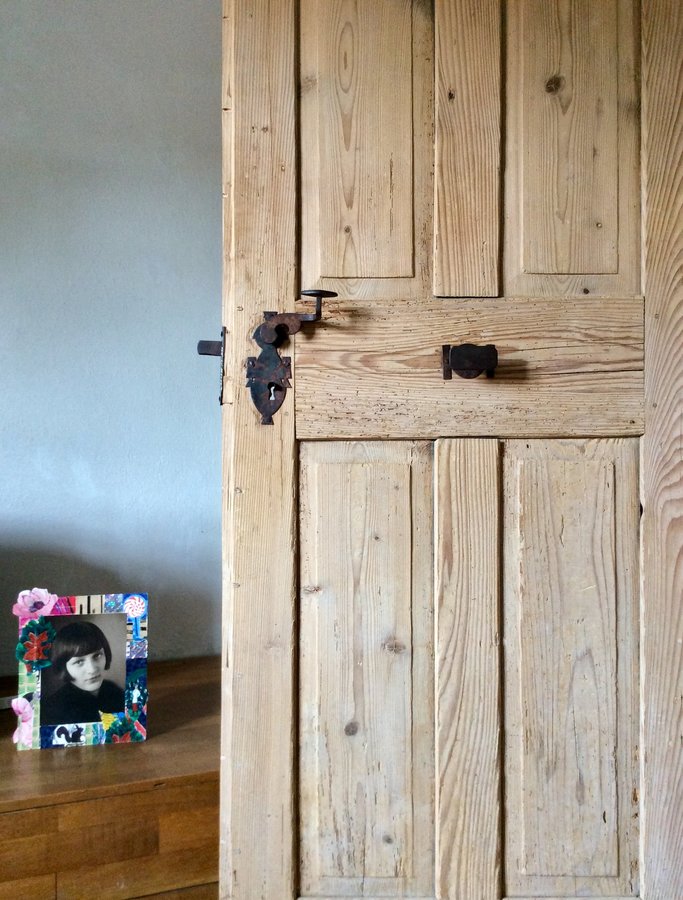 Ich liebe die Türgriffe in Verbindung mit dem unbehandelten Holz der Tür.