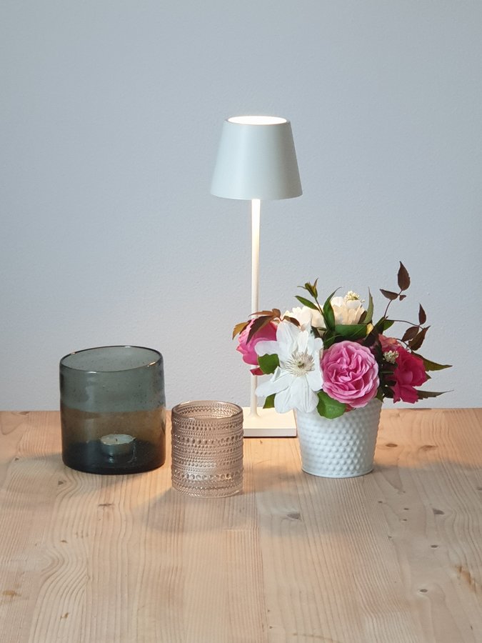 Blumen, Tisch, Vase, Windlicht, Rosen, Clematis, Tischlampe, Sigor, Das Depot, Butlers, Dehner