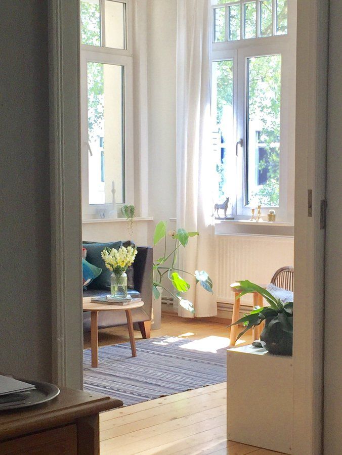 Ich mag diesen Blick ins helle Wohnzimmer ganz besonders gern. Allerdings bleiben die Vorhänge im Moment meist geschlossen!