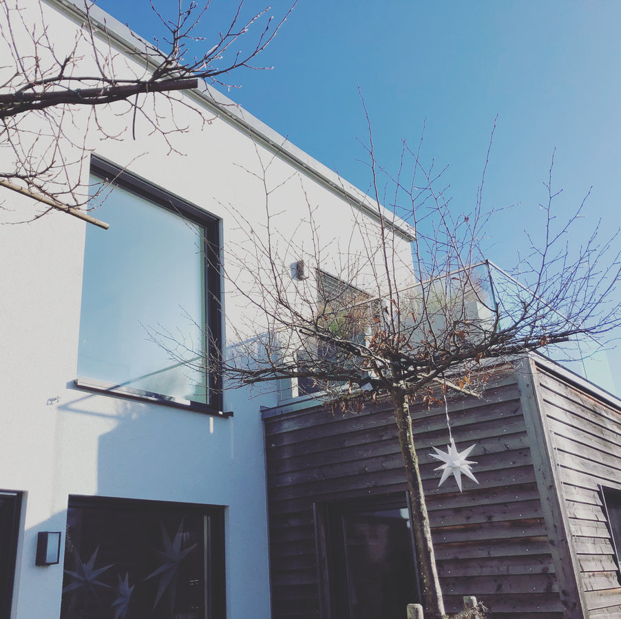 Ich mag diesen Blick auf unser Haus in jeder Jahreszeit. Wie sehr es sich durch die Grünen Bäume, den Stand der Sonne, etc. immer wieder verändert