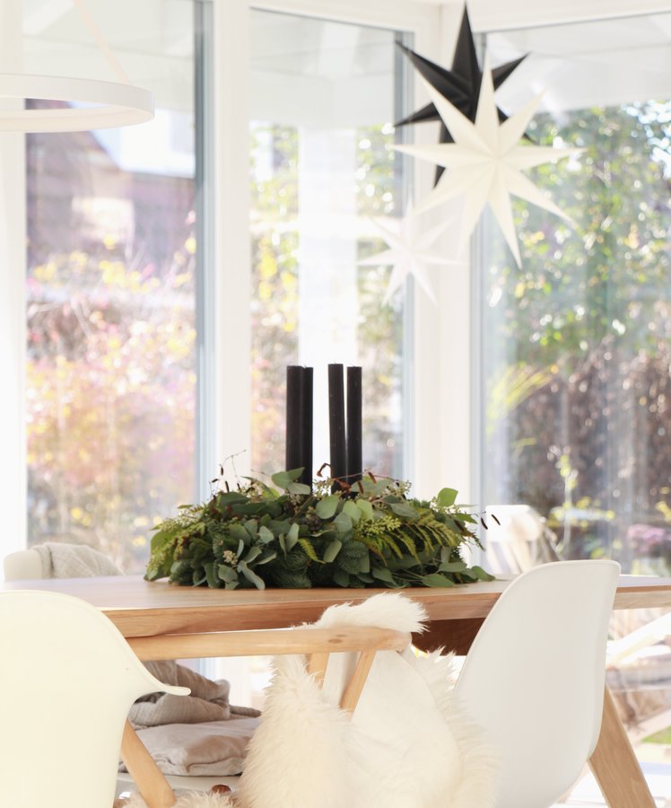 Adventkranz, Papiersterne, Vitra, Wishbone Chair, eichetisch