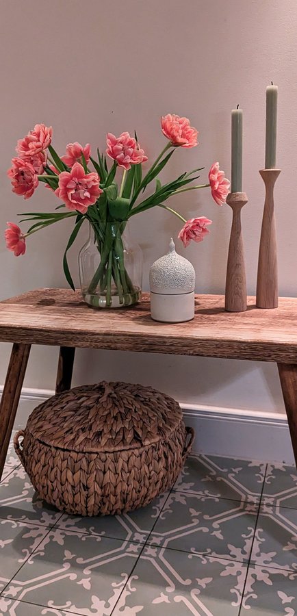 Zementfliesen, Holzbank, Küche
