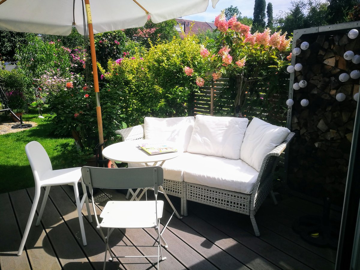 Im Sommer sitze ich bereits morgens auf meinem Lieblingsplatz im Freien. Dort arbeite ich und genieße oft bis spät abends meine freie Zeit.