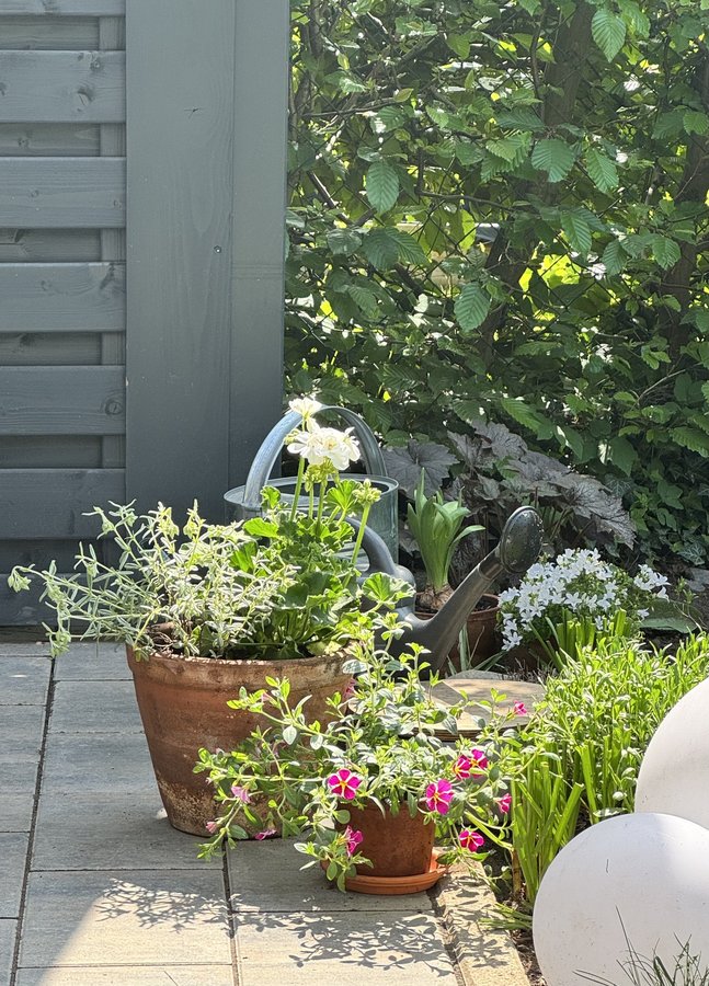 In den Töpfen blüht es, in den Beeten machen sich die Schnecken breit, die Nachbarskatze benutzt einen Teil der Beete als Katzenklo, unsere kränkelnde Weidenblättrige Birne musste ich gestern radikal zurückschneiden, einige Stauden sind den Wühlmäusen zum Opfer gefallen - Gärtnerglück 🤣
