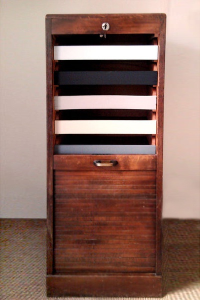 Die Schubfächer des alten Rollschranks wurden zwar erst Anfang des Jahres individuell gestaltet.