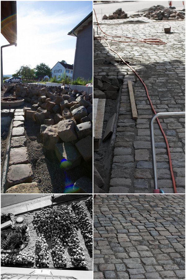 ...so spannend dabei zu sein und bewundern zu können, was die arbeiter innerhalb eines tages schon gepflastert haben. sehr interessant, wie das bei so unregelmäßigen natursteinen von statten geht....