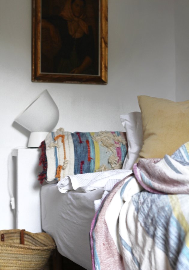 Schlafzimmer, Tagesdecke, Bettwäsche, Simple, natural, Korb, Vintage, Altbau, Mallorca, Urlaub, FrauVonUndSuOnTour