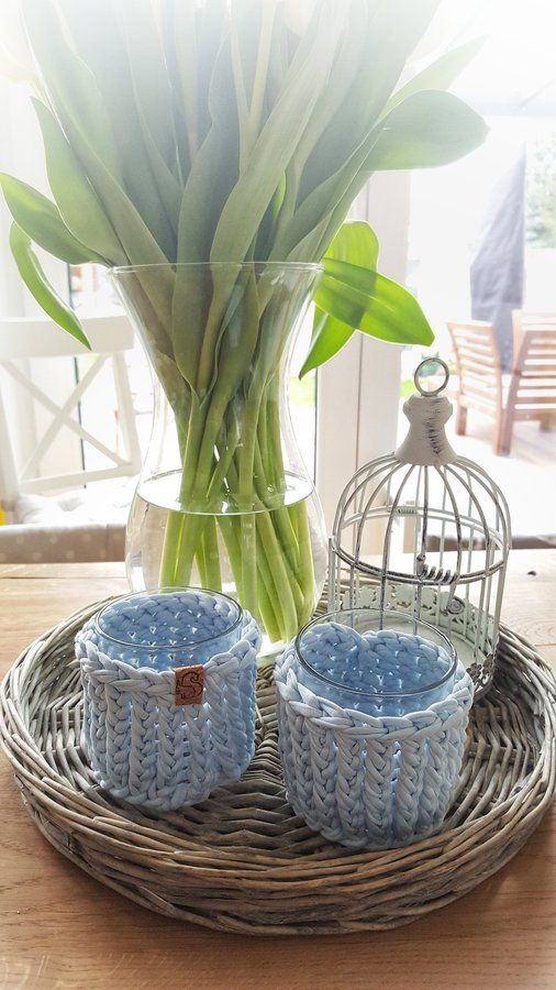 Jersey Strick Teelicht Gläser gehen auch wenn es draußen wärmer wird. Sieht einfach gemütlich aus.