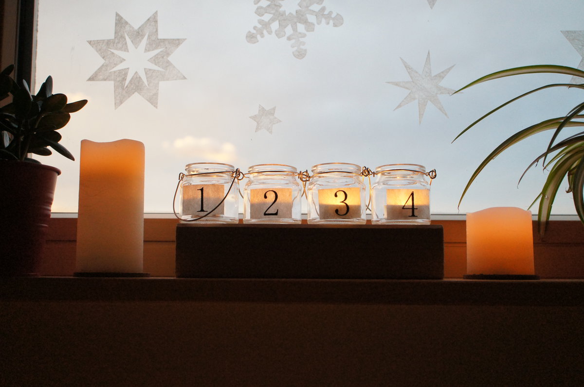 Der Schnee hat sich immer noch nicht sehen lassen, hmpf. Trotzdem haben wir es uns im Haus gemütlich gemacht und die vier Kerzen brennen nun auch: juhu, bald ist Weihnachten!