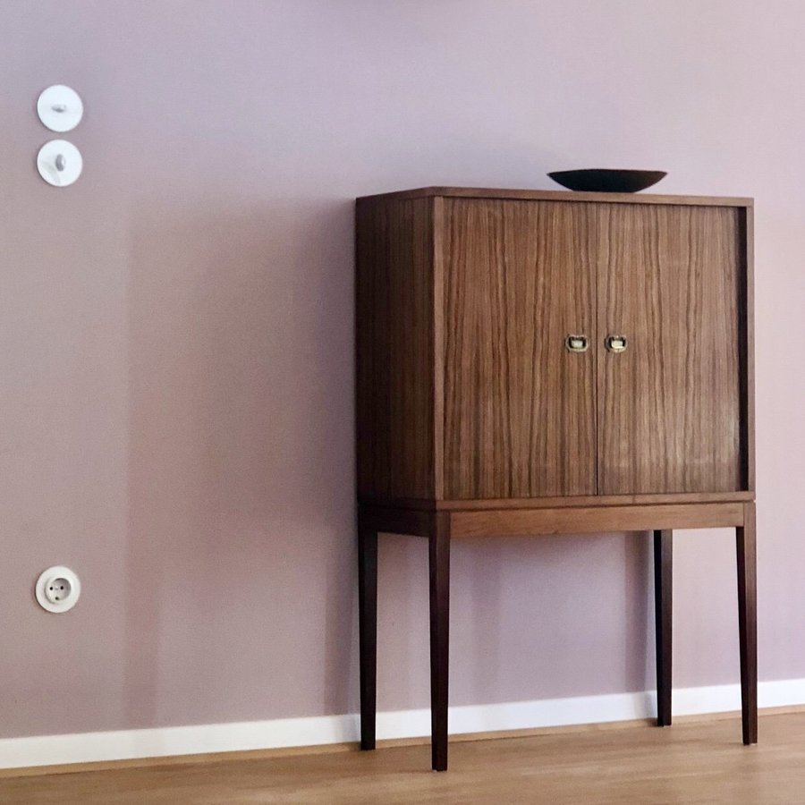 Danish Design, Midcentury, skandinavisch Wohnen, Barschrank, Wandfarbe Rosa