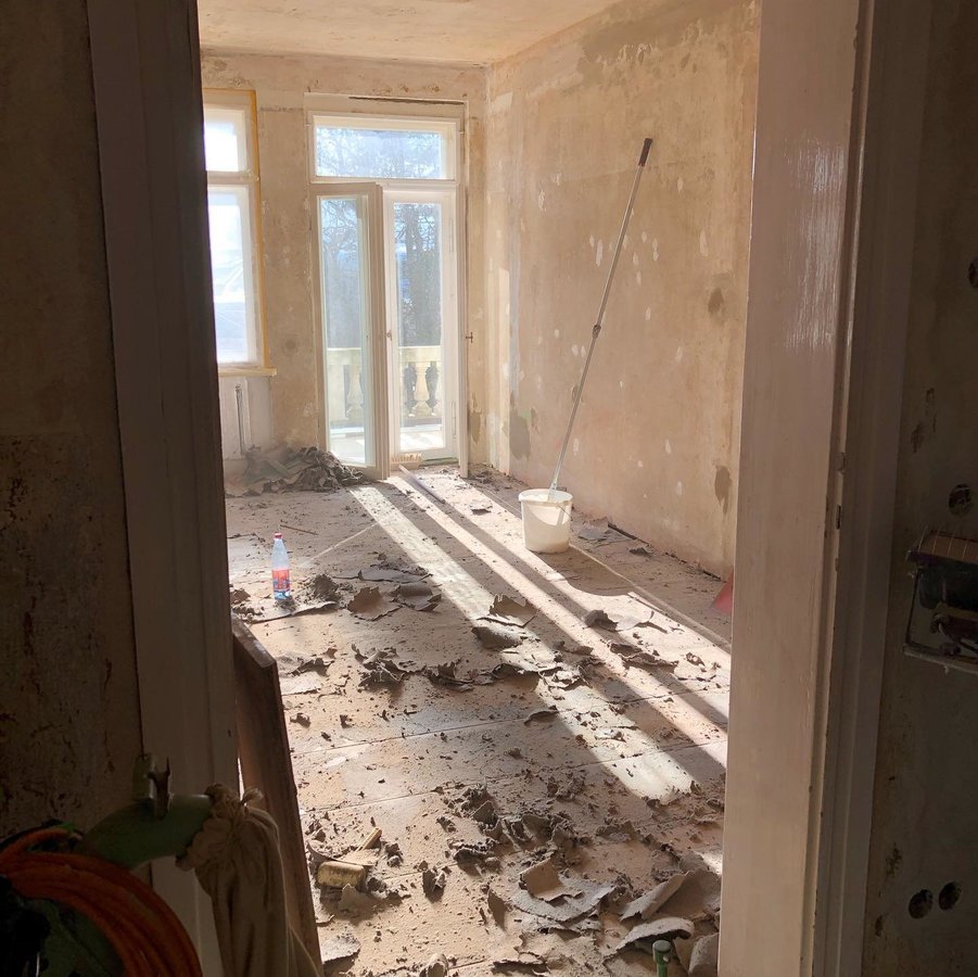 Jetzt kommen die breiten alten Holzdielen zum Vorschein!