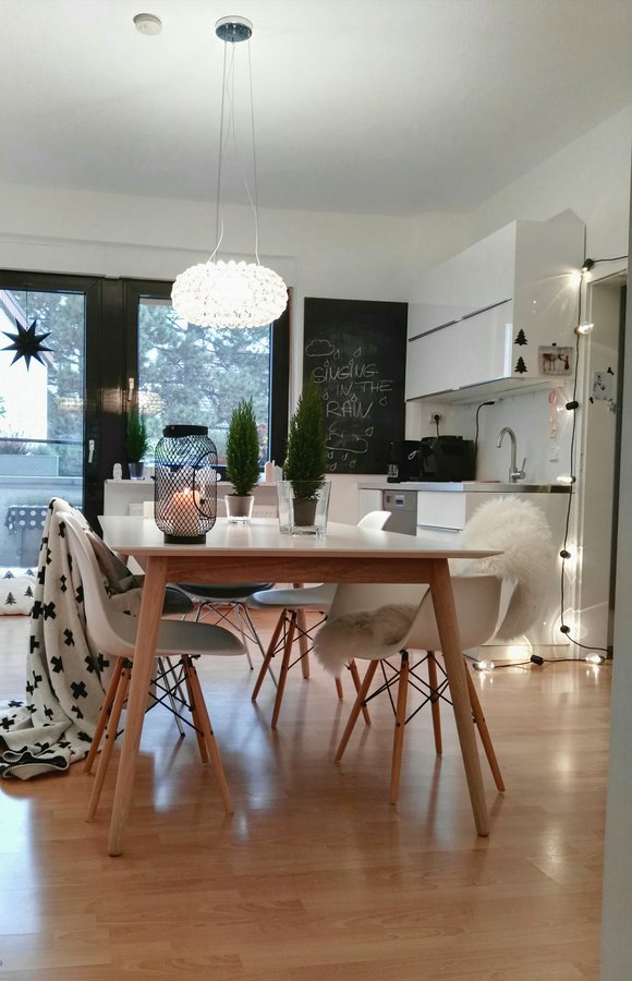 Küche, Weihnachten, Advent, Esstisch, Schwarz, Weiss, Lichterkette, Plaid, Tafelwand, Stern, Advent Weihnachten Deko, Esszimmer