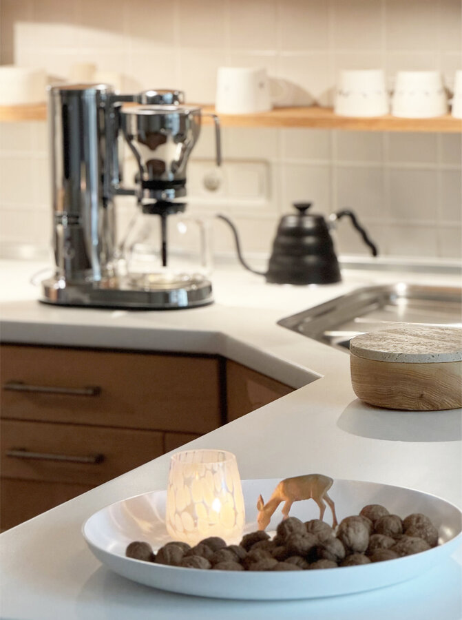 Kücheneinblick mit frisch gestrichener Arbeitsplatte...uuhuuund...neue Kaffeemaschine, die schon soo lange auf meinem Wunschzettel stand...jetzt gefällt mir unsere alte Küche wieder gut 😊