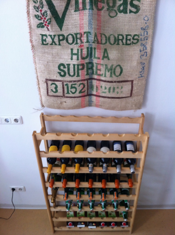 Kaffeesack begrüßt neues Weinregal