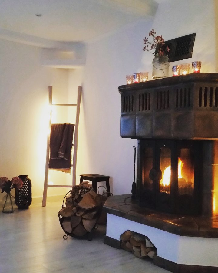 Wohnzimmer, Kamin, Kaminfeuer